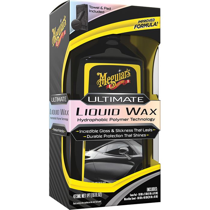 Meguiar's New Ulitmate Liquid Wax is a premium paint protectant using pure synthetic was blend for maximum performance. Improved formula delivers a glossier finish, increased protection and more water beading action in one easy step. Advanced pure synthetic forma delivers a long-lasting protective barrier on paint while amplifying reflection for incredible depth, shine and gloss. Hydrophobic Polymer Technology increases surface tension for relentless water beading.